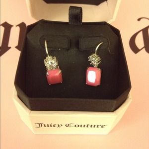 💯% Authentic JUICY COUTURE Pink Small Drop/ Dangle Earrings💎. Silver tone with round crystal and pink rectangular stone. BRAND NEW, NEVER WORN. Comes in original box. Tiny plastic backs but backs aren't even necessary for these or you could switch them out for a back you prefer. 🚫ABSOLUTELY NO TRADES!!!🚫