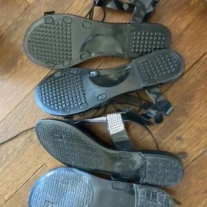 2 fabulous thick and strong jelly sandals. 1 pair Wild Diva criss cross and the other pair SWS with crystal bands. Both size 8. The SWS say 39 but are an 8. Like new.