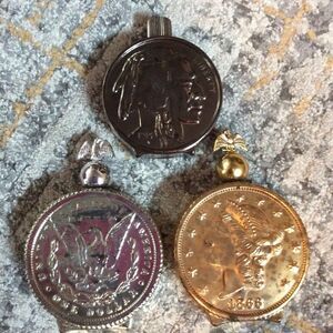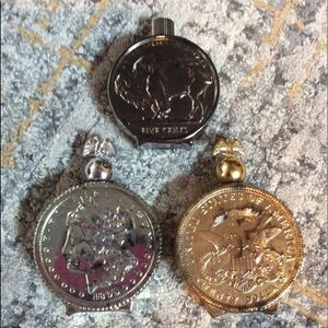 BUNDLE OF VINTAGE AVON BOTTLES! GOOD VINTAGE CONDITION EXCEPT THE LIBERTY DOLLAR HAS PAINT FLAKING OFF. SEE PIC