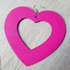 "BUNDLES ONLY" Huge Heart Wooden Painted Dangle Earrings