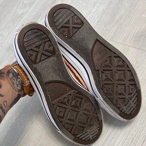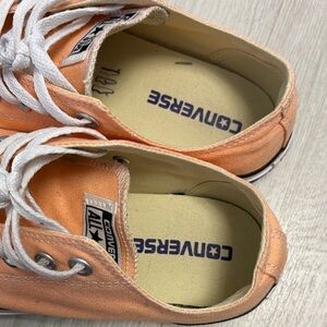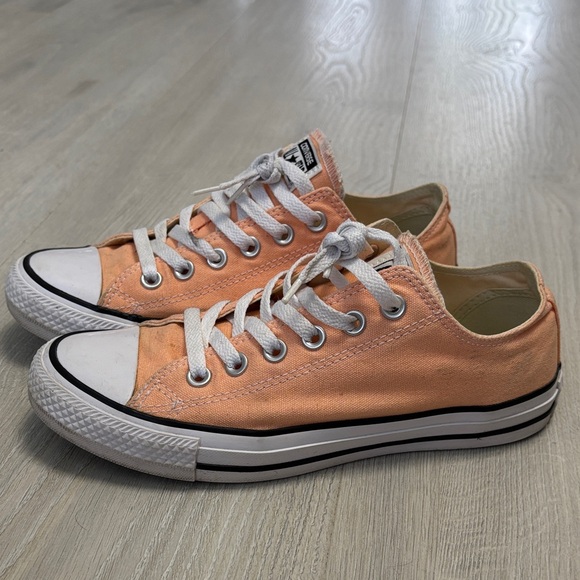 Classic Converse low-tops in peach. Features white laces and rubber soles. Have been used a few times, no damage, very clean as shown in pictures, could use laces if you want them to look brand new, excellent condition