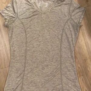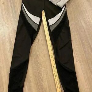 Great work out pants. Many open details in pants. Great gray shirt. Like new. Top is M ( fits like S) pants are S. Very comfortable