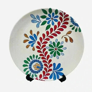 BUNGALOW Set of 4 Melamine 11" Dinner Plates Burgundy Floral Summer Table Decor