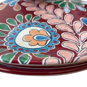 BUNGALOW Set of 4 Melamine 11" Dinner Plates Burgundy Multi Colored Floral NEW