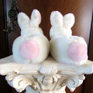 BUNNY SLIPPERS, KIDS' 1 - 2, NWOT, WHITE RABBITS w PINK EARS & TAIL, SO SOFT!