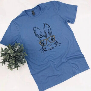 For Easter or anytime of the year. This adorable bunny with leopard print glasses will surely brighten your day! This is not your average Gildan short sleeve T-shirt. This signature 4.5oz., Softstyle Gildan t-shirt effortlessly combines fashion and function. Made using 100% preshrunk ring spun Cotton, this tee is breathable, soft, and provides a stylish alternative to your basic tee. Constructed with a rib collar, double-needle stitched sleeves and bottom hem, and a tapered neck and shoulders.