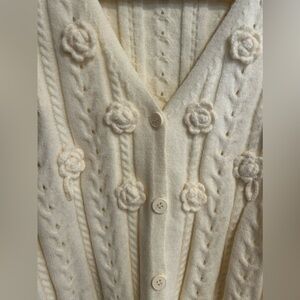 BUNULU cream v neck button down cardigan with rose details size M/L