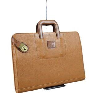 BURBERRY 16" Brown Leather Attache Briefcase Vintage Italy Mens Bag Portfolio