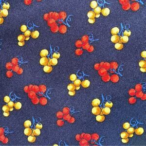 BURBERRY $220 Vintage Mens Silk Tie Navy Gold Red Grapes EUC