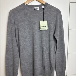 BURBERRY BEMPTON GRAY MERINO WOOL ELBOW CHECK PATCHES PULLOVER SWEATER XL
