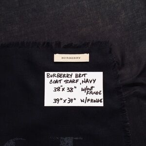 I bought this FABULOUS Burberry Brit coat scarf in NYC a few years ago and never wore it even once; it’s been hanging in my closet ever since! Burberry Brit sized this fine scarf at 40” x 40”, but it actually measures 39” x 39” with the raw edge fringe.
