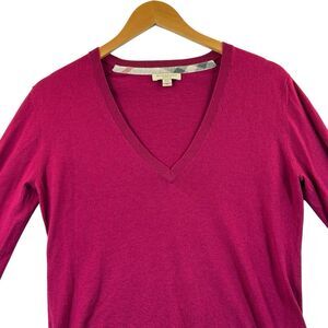 BURBERRY BRIT Sweater Women's M Magenta Plaid Trim Cashmere Blend Nova Check. Good pre-owned condition with normal wear, small dot on sleeve cuff, see photos for details. Measurements in photos and are approximate.