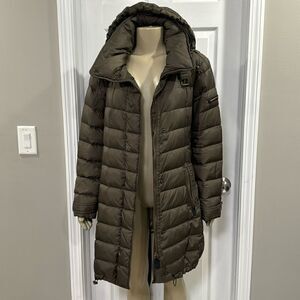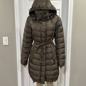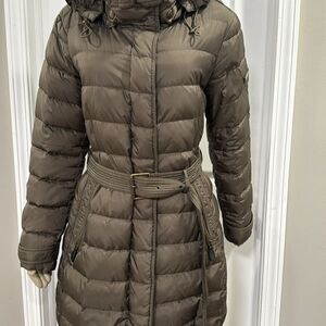 BURBERRY BRIT WINTERLEIGH DOWN COAT. DARK OLIVE