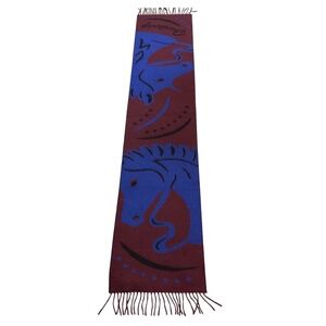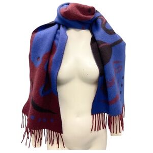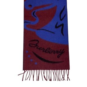Burberry Burgundy / Blue Fringed Cashmere Scarf