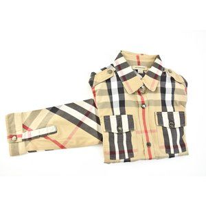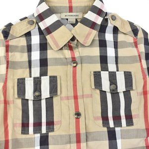 Beige "Nova Check" long sleeve shirt with silver, metal "Burberry" logo snaps