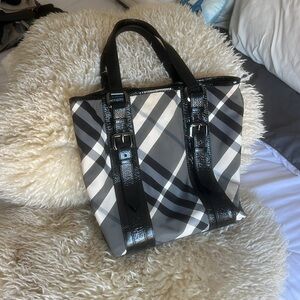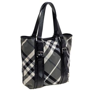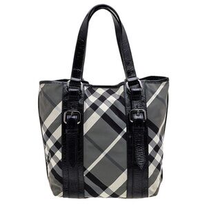 BURBERRY Black Beat Check Nylon And Patent Leather Lowry Tote