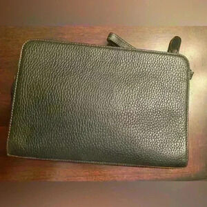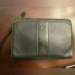 BURBERRY Black Large Clutch Bag Pebbled Leather Wristlet Authentic bs13248