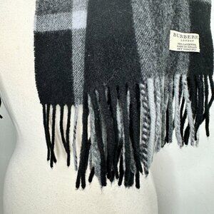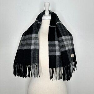 BURBERRY Black and Gray Wide check Lambswool scarf 40X30