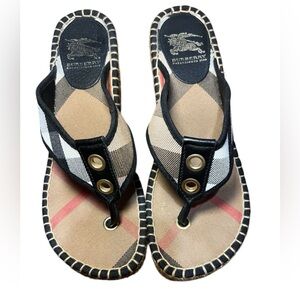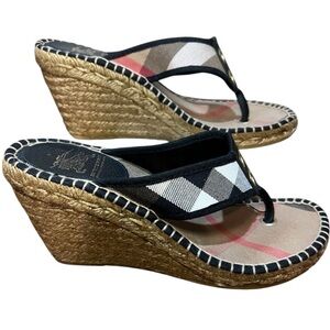 BURBERRY Nova Check plaid Nova Check wedge sandals. Raffia heel. Canvas straps. EUC Authentic