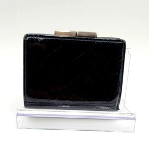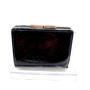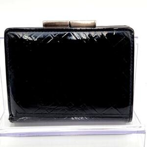 BURBERRY Black embossed patent leather kiss lock compact wallet. Has 5 card slots. Multiple bill compartments. Locking change compartment. Silver-toned hardware