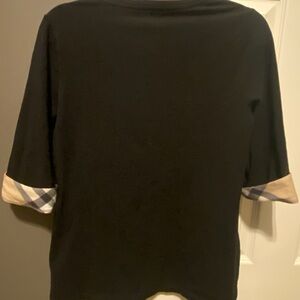 This BURBERRY Black with 3/4 Check Cuff, Scoop Neck & Stretch-Cotton Top is in Exceptional Used Condition (EUC): Previously lovingly cared for; but this is a preloved (used) item, some normal and minimal wear is expected. Depending on device used, color may vary. Review pics as they’re part of the description. Sold as is, no refunds. All auction bids/wins are final, no cancellations.