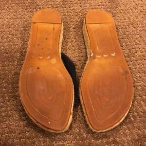Black wedge espadrilles wedge slides. Fabric material. Minor wear on foot but black band in great condition. Size 8.