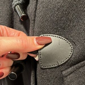 Exquisite design and craftsmanship. Polished horn toggle buttons, leather loop accents toggle closure, deep front pockets, attached hood.