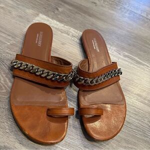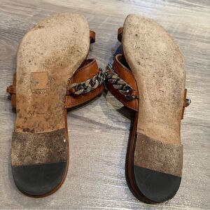 BURBERRY Brown Leather Thong Sandal Women’s Size EU 40.5 Chain Neutral