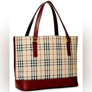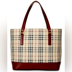 BURBERRY Burgundy House Check Canvas Handbag w/COA, EUC