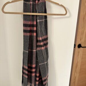 BURBERRY Cashmere Giant Check Fringe Scarf Antique Blush Like New