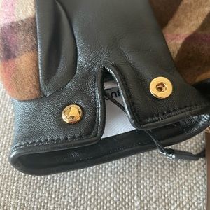 BURBERRY Checked Paneled Wool Gloves with Leather Trim - Size 7.5
