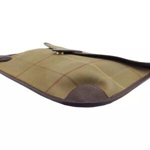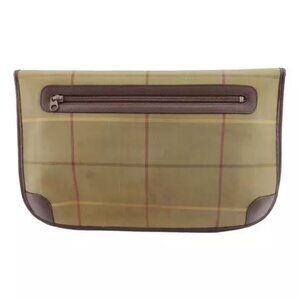 BURBERRY Clutch Bag Check Khaki Canvas x Leather Authentic Used