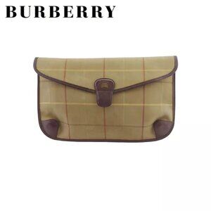 ◆BURBERRY◆BURBERRY◆Clutch bag second bag◆Women's men's◆Check◆Khaki brown red type◆Canvas x leather◆[Used]◆C4557