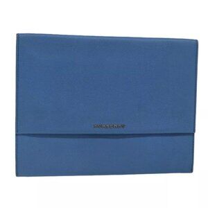 BURBERRY Clutch Bag Leather Blue Silver Auth bs17692