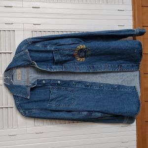 Size S. Excellent condition. Minor distress near L hemline- please see pics for condition & measurements.