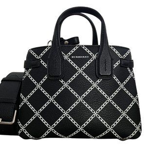 BURBERRY Goatskin Link Print Baby Banner Tote Handbag Black New Without Tags
