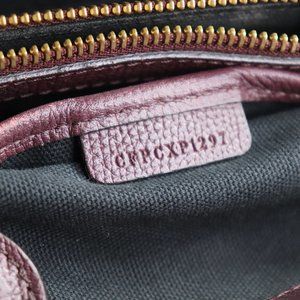 This stylish tote is crafted of finely grained calfskin leather in burgundy. The shoulder bag features rolled leather top handles, Burberry house check fabric side panels, an optional, adjustable crossbody strap, and polished brass clasps. The top is open to a partitioned black fabric interior with zipper and patch pockets.