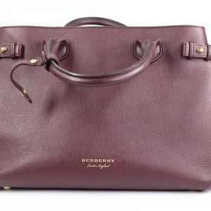 BURBERRY Grainy Calfskin House Check Medium Banner Tote Mahogany Red