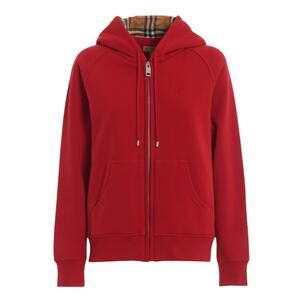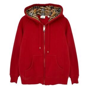 BURBERRY Hackfall Vintage Check Hoodie S This comfy cotton-blend sweatshirt gets the signature Burberry treatment with the house's iconic check pattern peeking out from the drawstring hood. Tonal knight embroidery at the chest adds another signature element. MATERIAL & DETAILS 80% Cotton & 20% Polyester Manufacturer Color(s) Cadmium Red Size Small Measurement approximates: Shoulders 18.5" Chest 40" Length 24" Sleeve (shoulder to cuff) 21" CONDITION Very good. This had very light wear & was well maintained. There is some light fading & pilling from wear & care. *PLEASE NOTE: The first three images are stock photos & the remaining are photos taken by me of the actual product. Color(s) may vary depending on lighting.