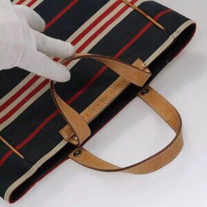BURBERRY Hand Bag Canvas Leather Navy Silver