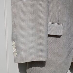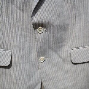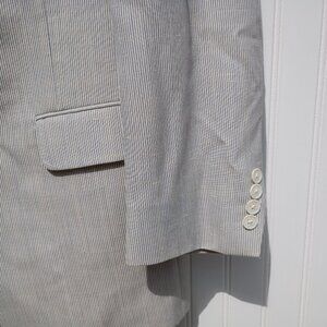 BURBERRY Jacket Mens 42R Black Beige Striped Seersucker Blazer Sport Coat Vtg