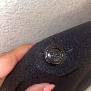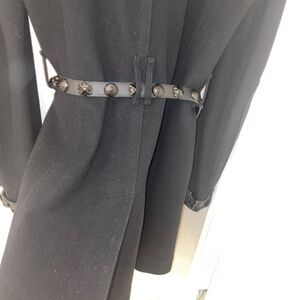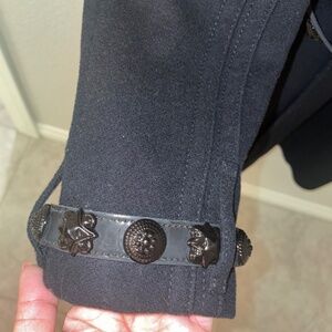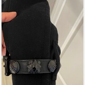 The double-breasted design adds a classic touch, while the black color makes it versatile for any outfit. This coat is a size 4.