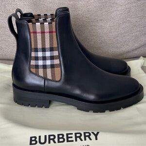 BURBERRY LEATHER CHECK CHELSEA BOOTS