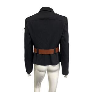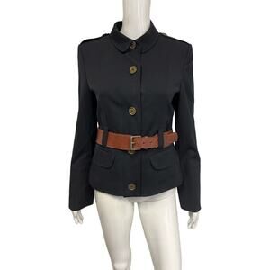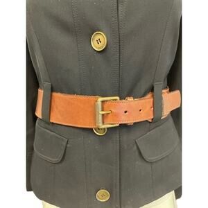 BURBERRY LONDON Blue Navy Collared Brown Leather Belted Jacket Blazer US 8