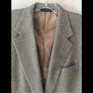 BURBERRY LONDON Brown Houndstooth 2 Button Wool Blazer, Size 39S