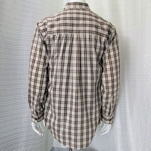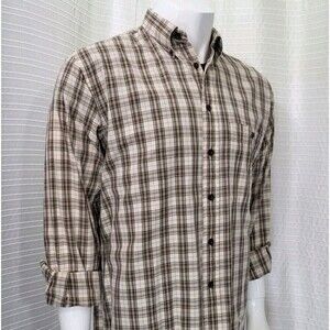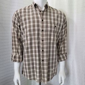 BURBERRY LONDON Button Down Shirt Plaid Brown Tan Made in USA Men's M