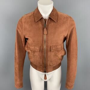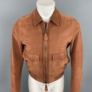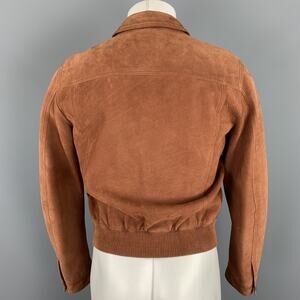 BURBERRY LONDON Chest Size 38 Brick Solid Zip Up Nubuck Leather Jacket