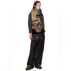BURBERRY LONDON Large Check EKD Cashmere Reversible Fringed Edge Scarf Wrap