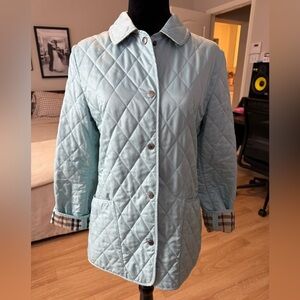 BURBERRY LONDON Quilted Robin's Egg Tiffany Blue Nova Check Lined Jacket Size XS