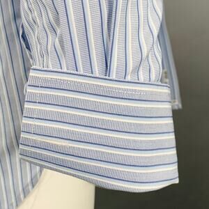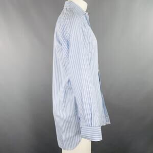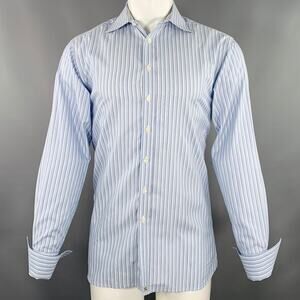 BURBERRY LONDON Size M Blue White Stripe Cotton French Cuff Long Sleeve Shirt